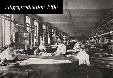 1976 wird in der RÖNISCH-Fabrik (Werk 1) die Flügelproduktion einge-